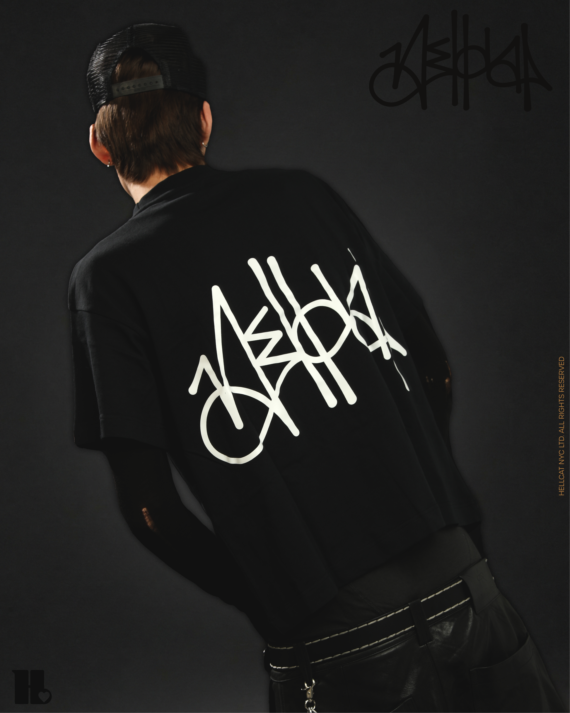 Oversized Plastisol Screenprint on 7.5 oz. Signature Hellcat Custom Blank. Boxy, Cropped Fit. 100% 260 GSM Ring Spun Cotton.